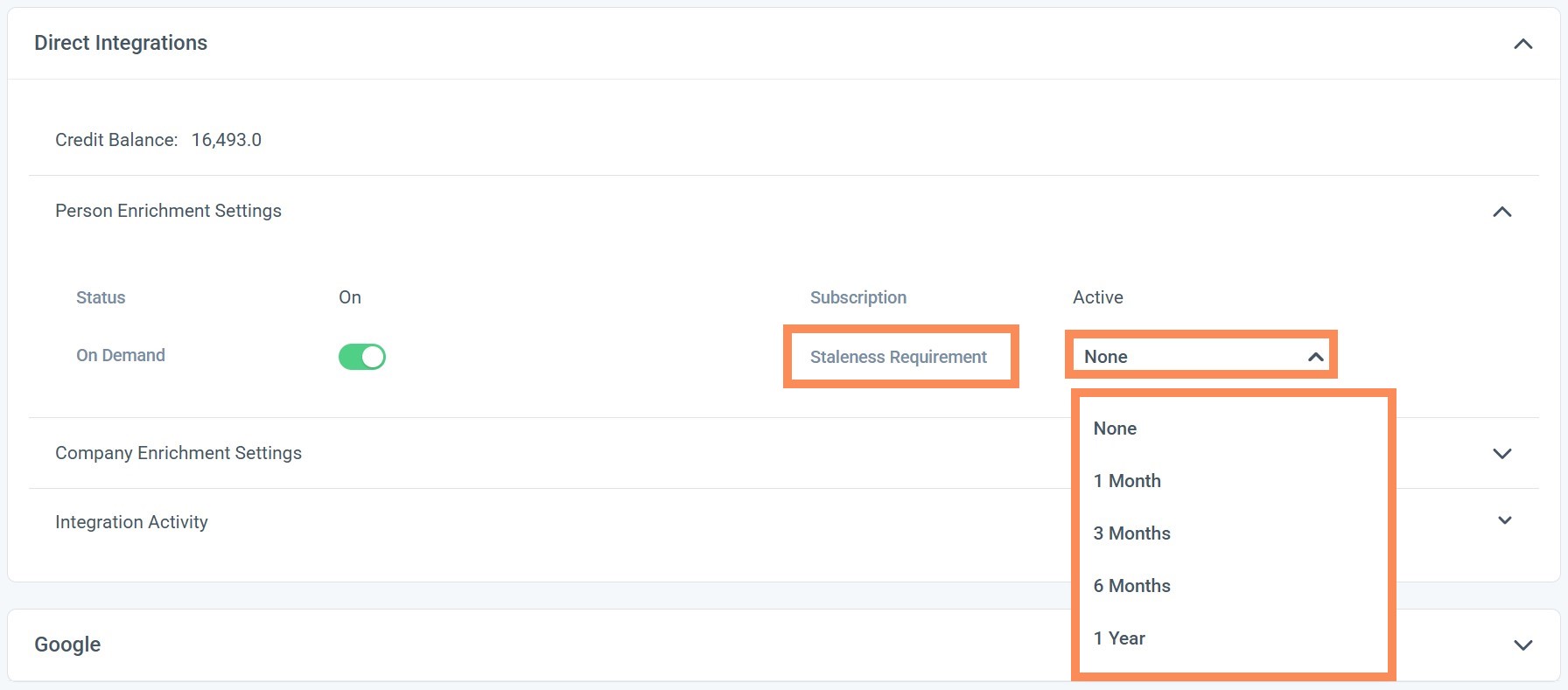 Now that your Person Enrichment feature has credits, the Integration Section will appear in the Integrations tab making the ability to toggle Person Enrichment ON available.
