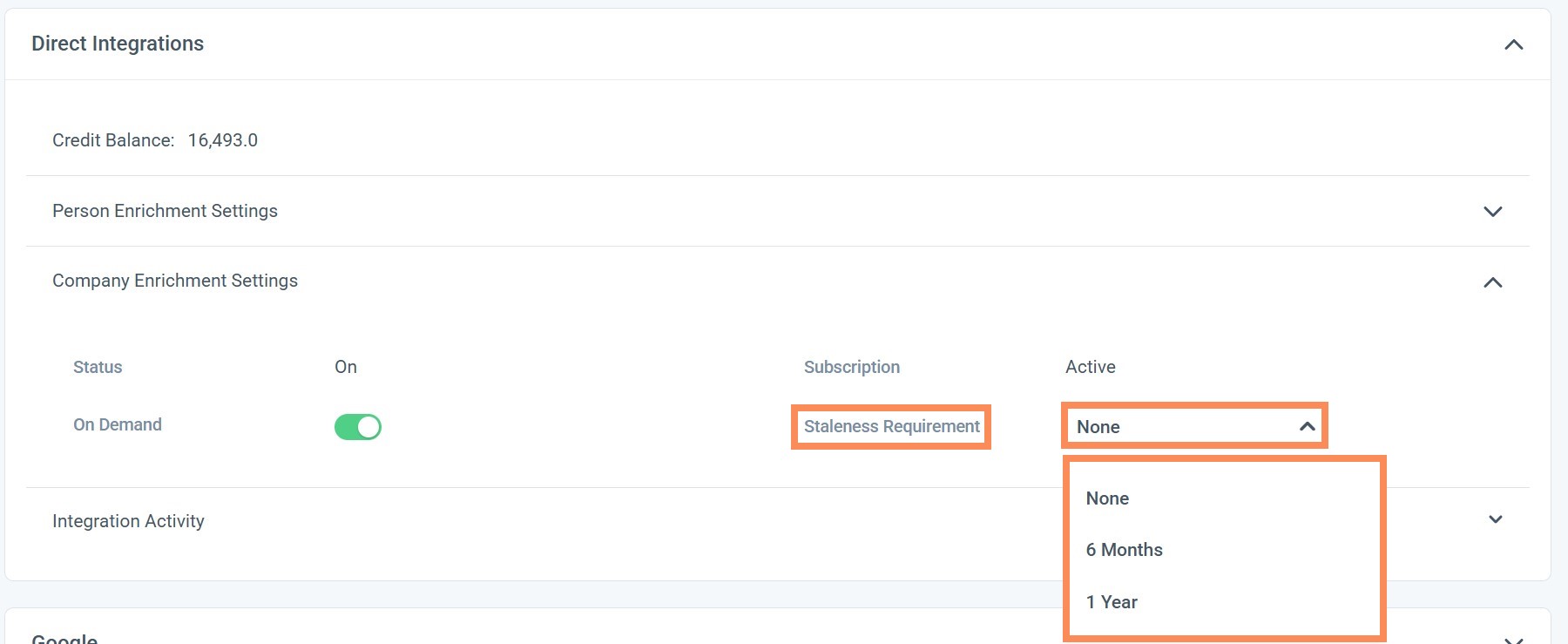 Choosing the Staleness Requirement will set a time frame for the amount of time before a company record can be counted for an update.