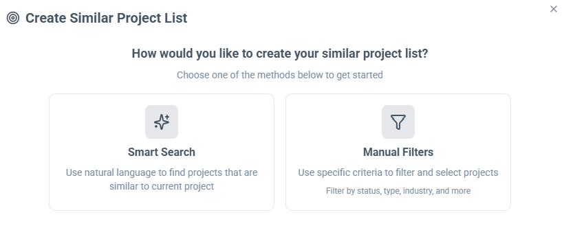 You can then search through your projects and selects relevant projects. The list of projects will show the best of up to 10 similar projects.