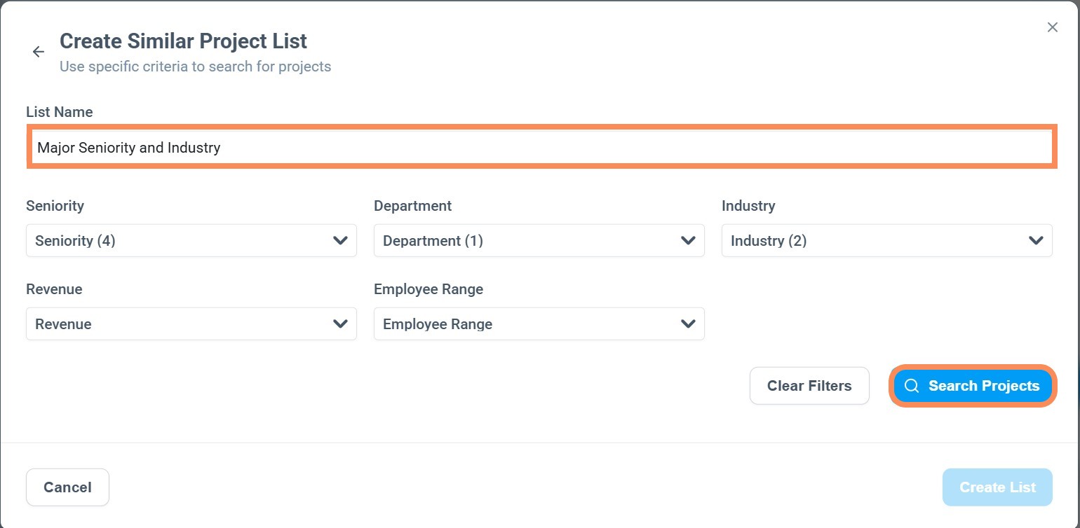 Click on the Create Similar Project List button.
