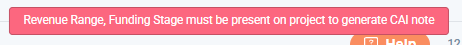 There is required information for the project profile in order for CAI to be able to generate the Assessment note and Ratings. Below is an example of an error message received when a project does not meet CAI requirements.