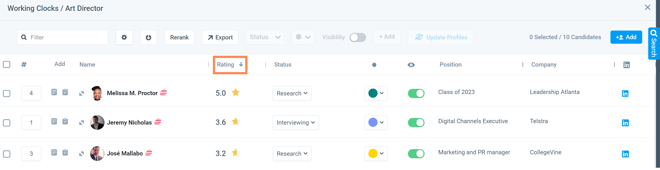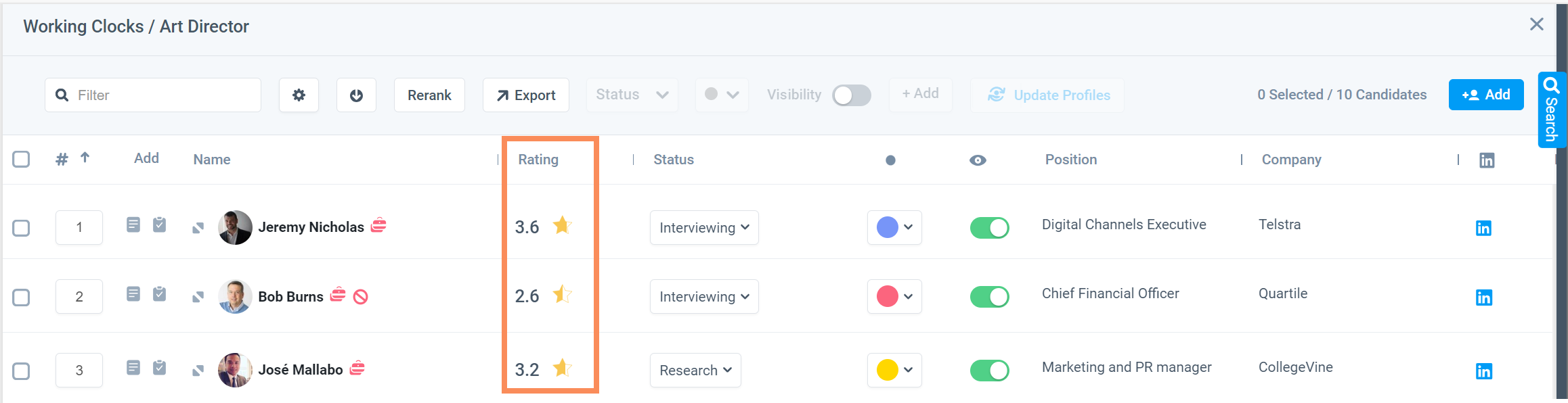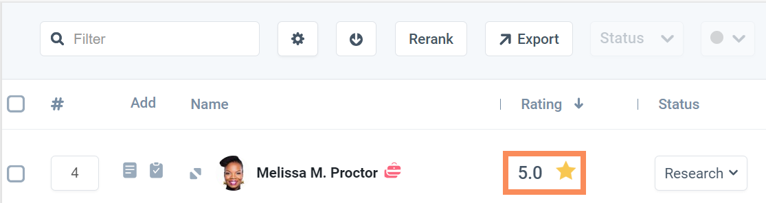 Candidate Rating in Grid View: